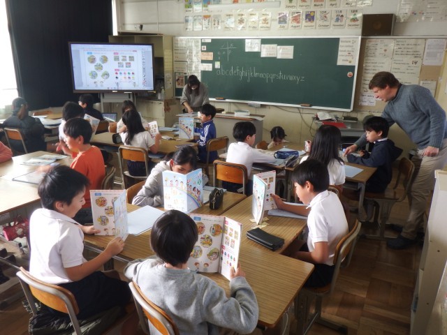4年生 外国語活動「Do you have 」、「Yes I do.」持ち物を尋ねたり、答えたりする言い方を覚え、ペアで練習をすることができました。