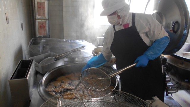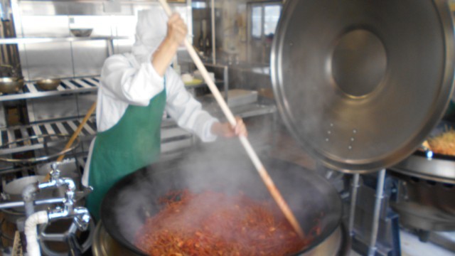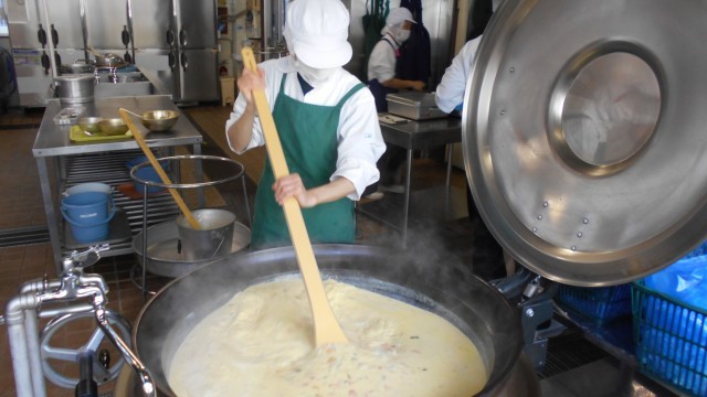 今日の給食は、イタリア料理です!主食は、「ペスカトーレ」という、魚介類が入ったスパゲッティです。えびやイカと玉ねぎ、マッシュルームをトマトと炒めたソースでスパゲッティをからめた料理です。「ポークカツレツ」は、洋風のとんカツです。豚肉を薄く切ってあるので、サクサクとした食感が楽しめます。
