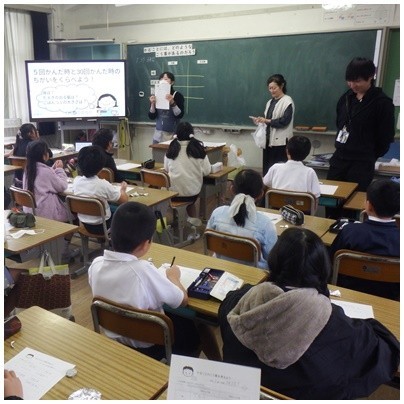 4年生 保健「かみかみ指導」歯の衛生週間ということで、養護教諭、学校栄養職員の先生と一緒にかむことの効果について考えました。