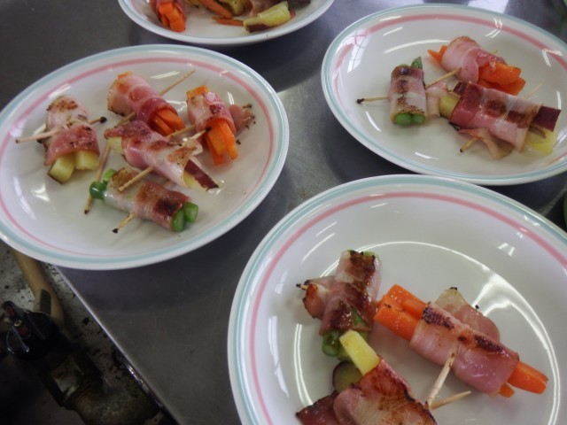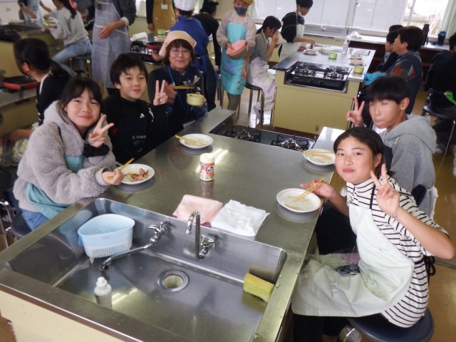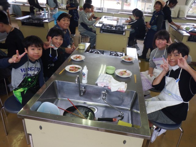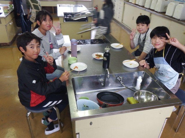 6年生 家庭科調理実習「野菜のベーコンまき」今日も地域の皆さまの支援をいただきながら、テキパキと調理を行いました!上手にできあがった、料理を味わって食べることができました。今日で小学校での調理実習は全て終了しました。ありがとうございました。(城東の里運営協議会 地域学校協働活動)
