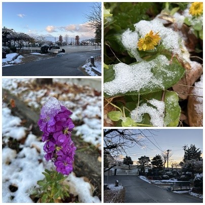 木曜日の朝を迎えました。朝方まで降雪がありました。この冬の初雪ですね。道路に積雪はありませんが、場所によっては凍結しているところがあるかもしれませんので、登校時ご注意ください。日中は、気温が上がらず、今年一番の冷え込みの予報です。寒さへの対応をよろしくお願いします。