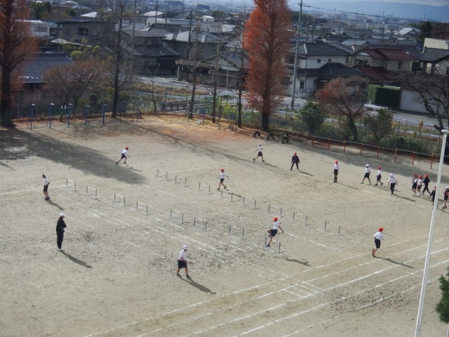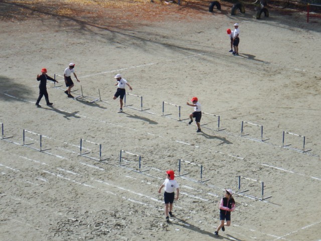 4年生 体育「ハードル走」走り方を工夫して練習に取り組んでいます。イメージ通りに走り、跳べるようにくり返し練習を行いました。