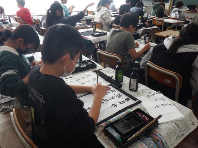 6年生 書写「名月や」名月や池をめぐりて夜もすがら 今日は清書に取り組みました。