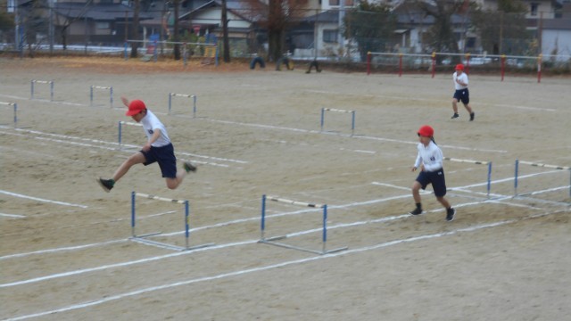 3年生 体育「ハードル走」運動場でハードル走に取り組みました。今日は、計測を行い、練習の成果を試しました!