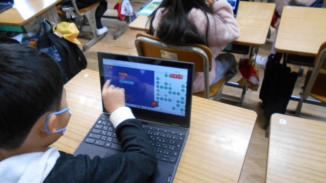 2年生 ラインズのICT授業「プログラミング」タブレットを使って、プログラミングを行いました。ゲームクリアを目指して真剣に取り組んでいました。