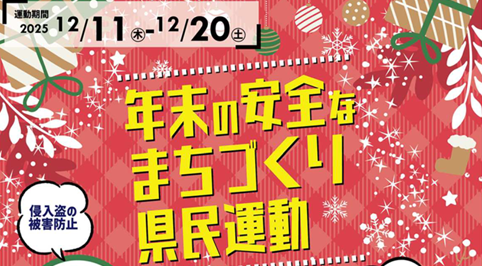 県民総ぐるみで次の3項目を重点的に犯罪の防止等を図っていきます。〇 特殊詐欺、SNS型投資・ロマンス詐欺の被害防止 〇 侵入盗の被害防止 〇 自動車盗の被害防止