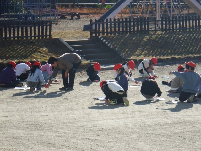 3年生 理科「光の性質」ルーペを使って、太陽の光を集めました。光を集めるとどんな変化が起こるかな?実験を通して学びました。