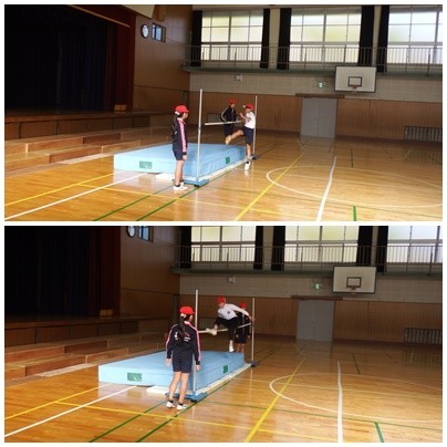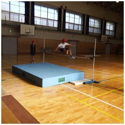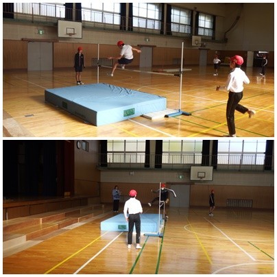 5年生 体育「走り高跳び」体育館で活動を行いました。目標の高さを跳べるように、助走、踏みきりに気をつけながらベストを尽くして頑張りました!