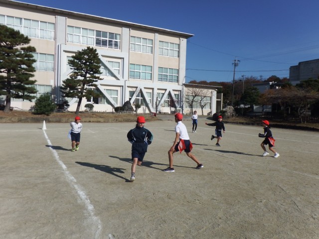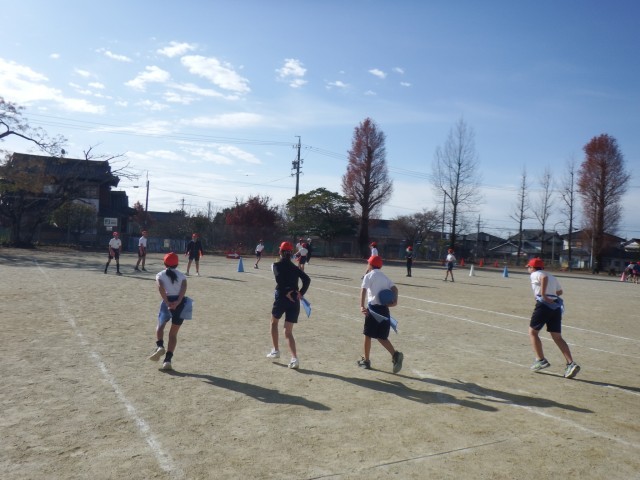 6年生 体育「タグラグビー」運動場でタグラグビーを行いました。作戦を立てて、ボールをゴールに運びます。一生懸命に取り組みましたね!