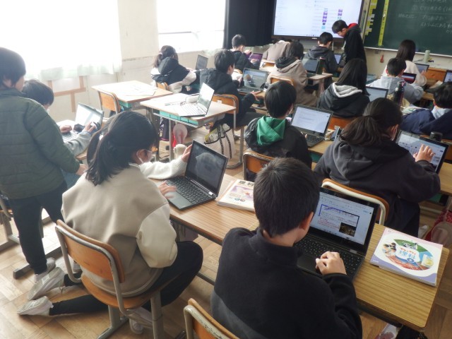 6年生 理科「土地のつくりと変化」今日は学習のまとめと「問い」の解決に向けて、調べ学習を行いました。プレゼンテーションを作り、後日学びの発表を行います。
