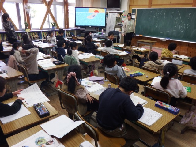 2年生 国語 聞いて楽しもう「せかい一の話」先生の音読を聞き、さまざまな表現方法があることを知りました。