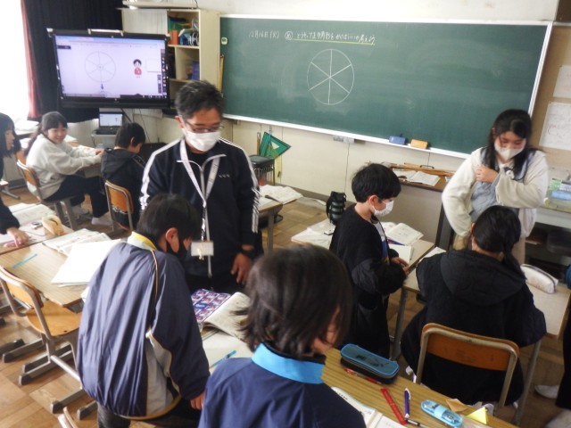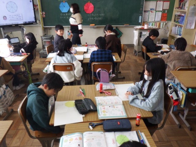 5年生 算数「円と多角形」正多角形の書き方を考えました。どのようにしたら書けるのかな?ペアでグループで考えました。