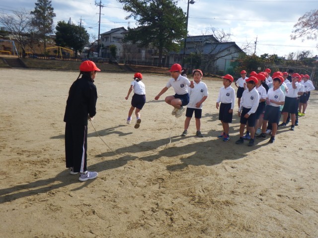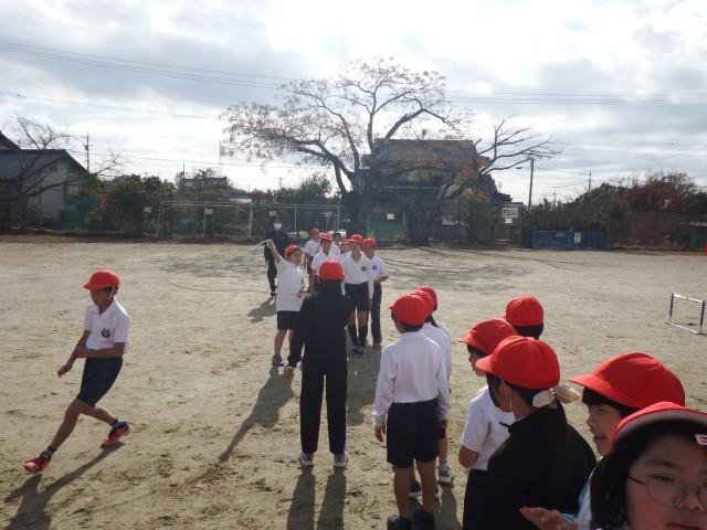 4年生 体育 運動場で、縄跳び、ハードル走に取り組みました。長縄は、学級の達成目標を目指して頑張っていました♪