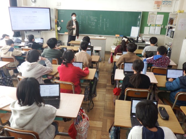 6年生 1月の学習発表会に向けて資料を作成しています。より良いまちづくり、犬山にするためにはどうしたら良いだろうか。アイディア出しを行っています。学んだことを活かしながらグープで相談をしました。