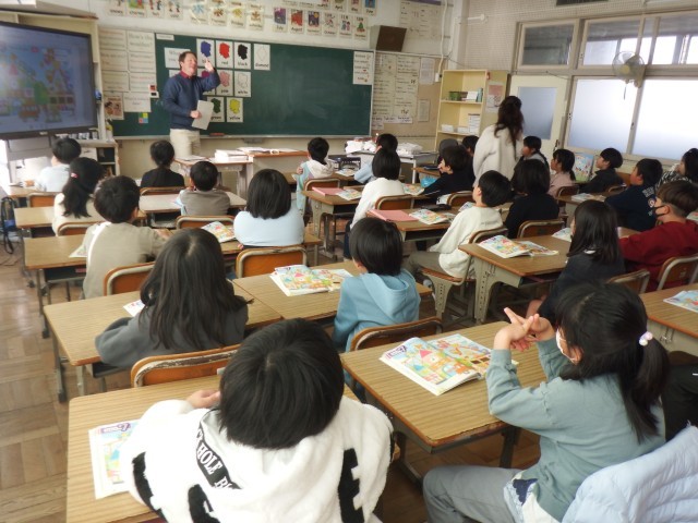 3年生 外国語活動 「What do you want.」unit.7 カードに描かれたもの、色を言いながら、英会話をくりかえし練習を行いました。
