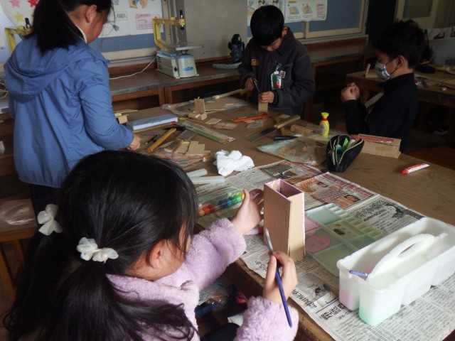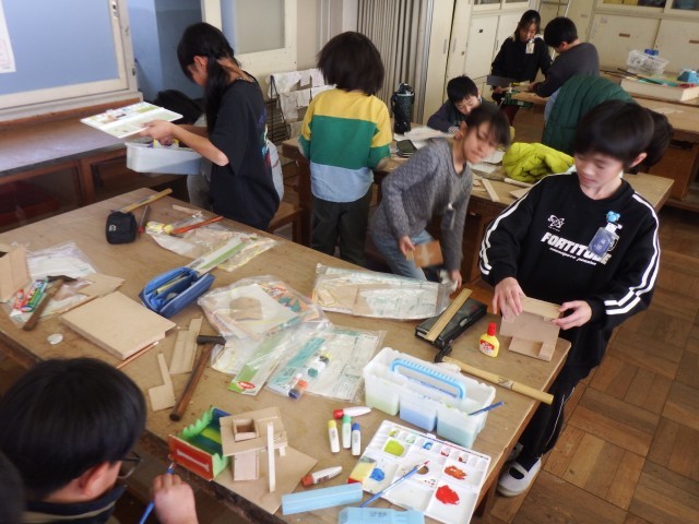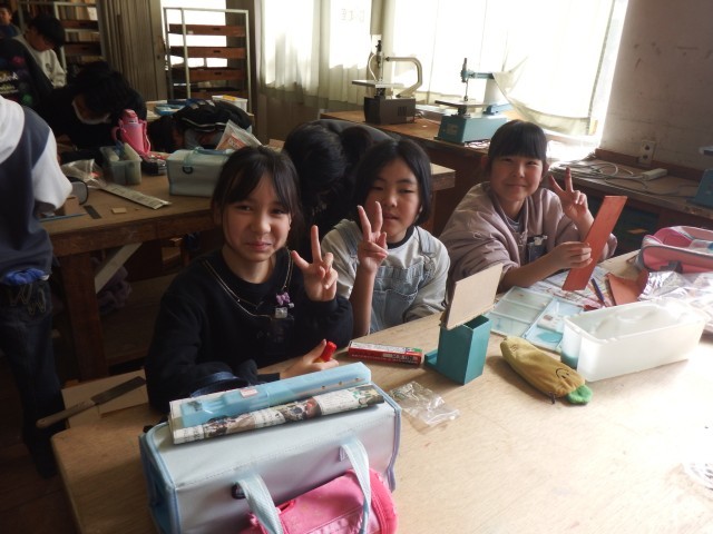 4年生 図画工作「きって楽しいきっと使える」作品作り中です!安全に気をつけながら一生懸命に取り組んでます。