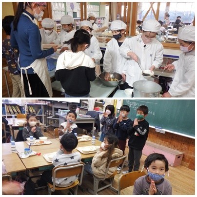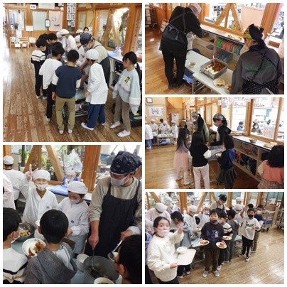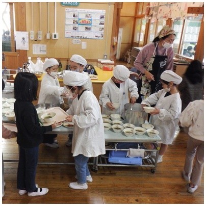おなか空いたね!今日もおいしい給食の時間です。みんなで協力をしてテキパキと準備を進めています!