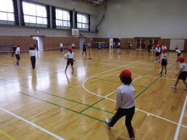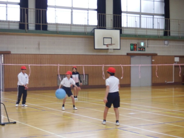 4年生 体育「ソフトバレーボール」体育館でバレーボールに取り組みました。ソフトバレーをうまく扱いながらゲームを進めました。