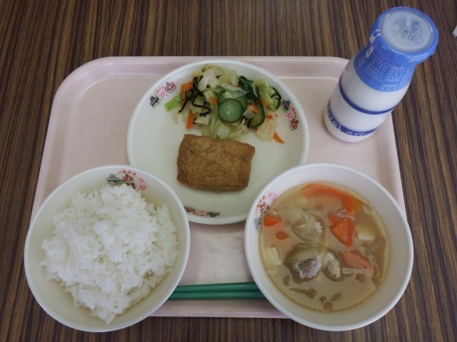 野菜の塩昆布あえ 鶏ごぼう味噌汁