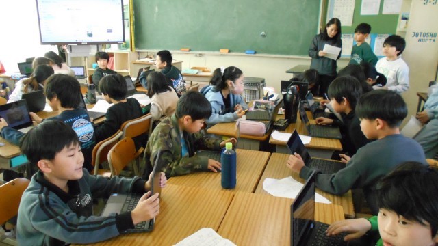 4年生 学習発表会、里山学習感謝の会に向けて、プレゼンテーションを作成しています。どのグループも立派なプレゼンができあがりそうです!