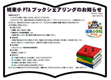 (1月24日開催)PTAブックシェアリングのお知らせ