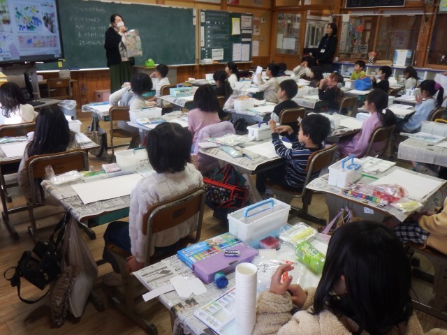 1年生 図画工作「うつしたかたちから」いろいろな形をうつそう!作品作りに取り組みます。