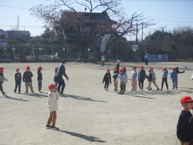 2時間目の放課「なかよしタイム」です。外気温は5℃ですが、風が無く、太陽の陽の光で温かく感じます。運動場でめいっぱい活動することができました。