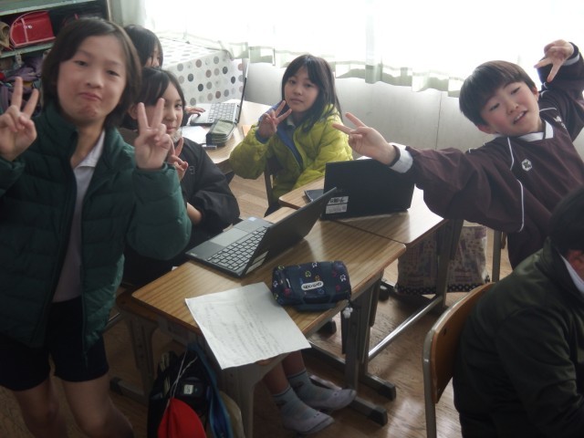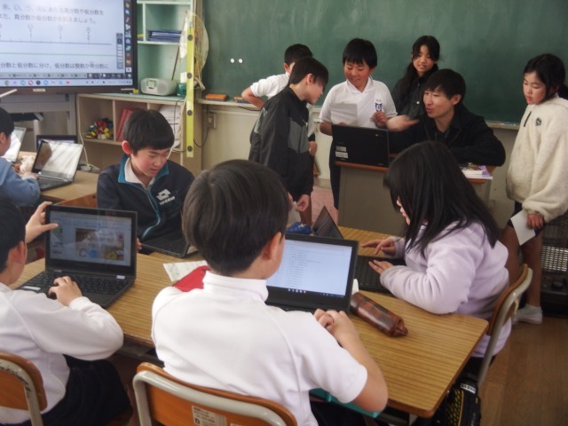 4年生 学習発表会に向けて練習中です。完成したプレゼンテーションを活用し、時間をはかりながらグループで発表練習をすることができました。