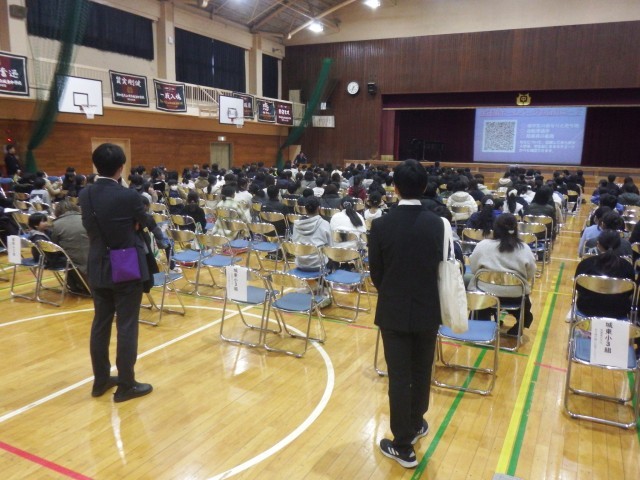 城東中学校入学説明会の様子です。春から始まる中学校生活に向けて、中学校区の6年生、保護者の皆さんが城東中学校で説明を受けました。資料を見返しながら、入学準備を進めていってください。ご不明な点は、中学校までご連絡ください。なお、中学校への提出物は、直接中学校へお持ちください。よろしくお願いします。