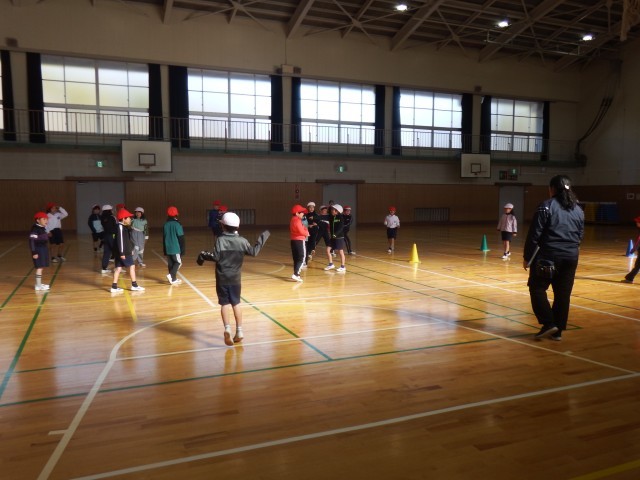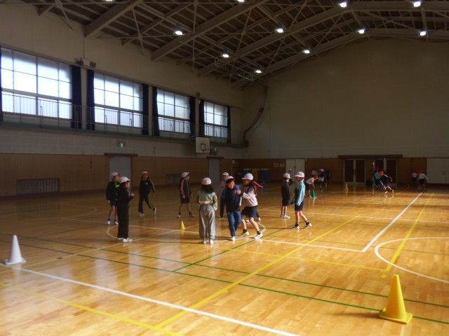 2年生 体育 体育館で活動をしました。たくさん動くとポカポカからだが温まりますね!