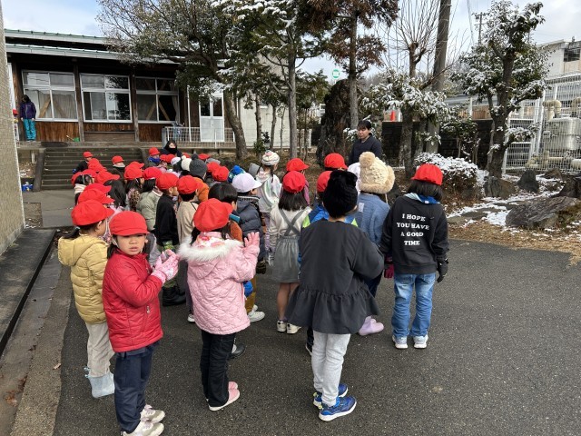 1年生 生活「ゆきあそび」連日、雪が降りました。校庭にうっすらと雪が残っています。冷たくて綺麗な雪、ぎゅっと握るとどうなるかな?靴で踏んだらどんな音がするかな?