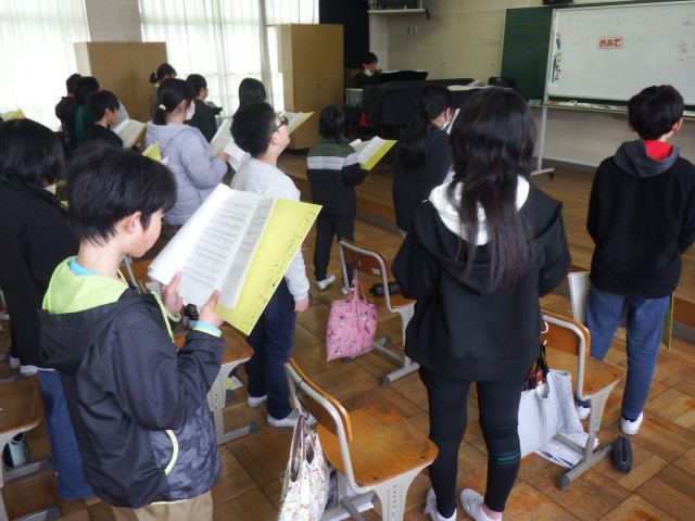 6年生 音楽「旅立ちの時 ~Asian Dream Song~ 二部合唱」卒業式に向けて練習が始まりました。美しい歌声が音楽室に響いています♫