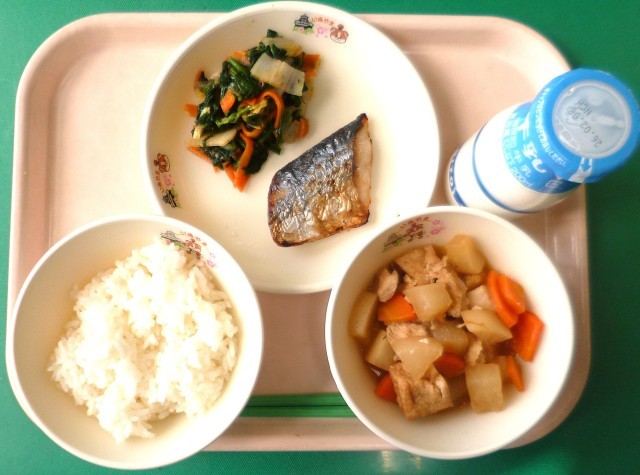 ご飯 牛乳 さわらのつけやき ほうれんそうのおひたし 大根の煮物