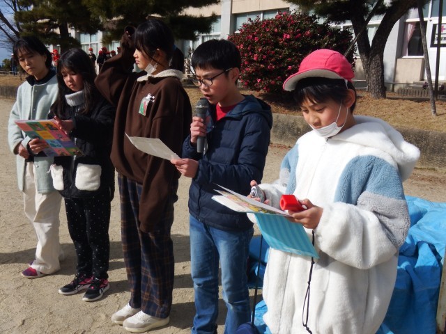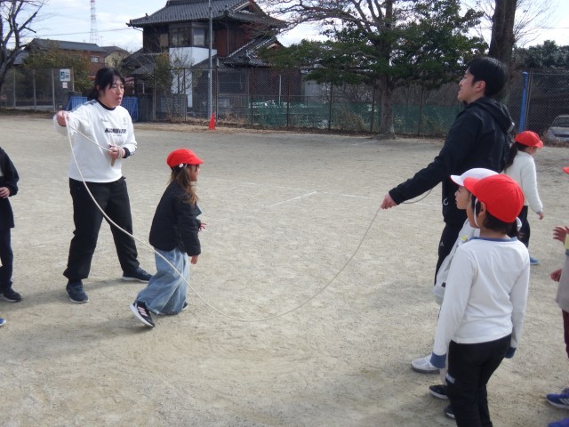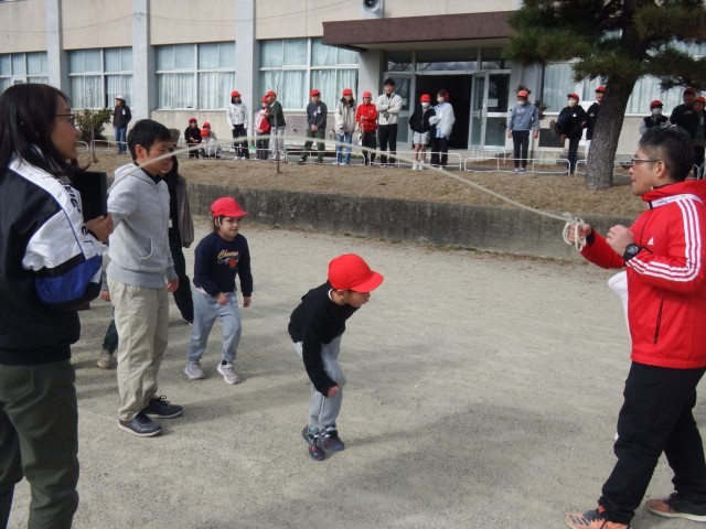 お昼の放課「のびのびタイム」 大縄跳び大会(1・2・6年生の部)を開催します!運営の児童達の元気いっぱいのアナウンスで大縄跳び大会がスタートしました。軽く練習した後、大会スタートです!