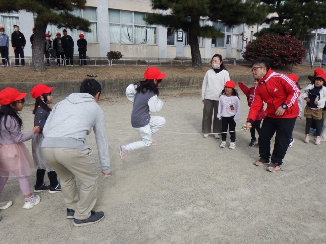 1・2年生、あさがおひまわりたんぽぽ学級の部 さぁ!スタート!学級ベストを目指して頑張っています♪ 大きな声で1・2・3・4!周りからは、ペア学年の皆さんが一生懸命に声援を送っています!!