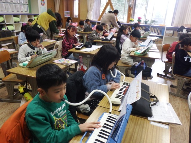 1年生 音楽「がっそうをしよう」今日は、せいじゃのこうしんの練習を始めました。頑張って練習に取り組みました♪