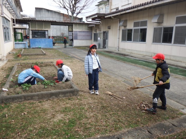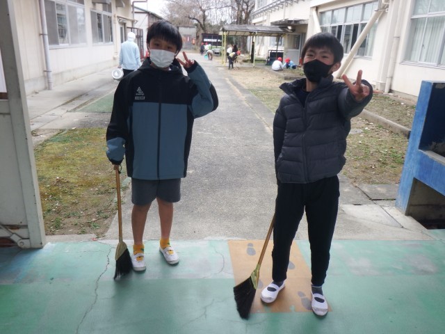 もくもく掃除です。教室や校庭を一生懸命に掃除をしています!