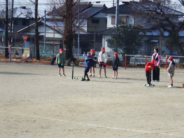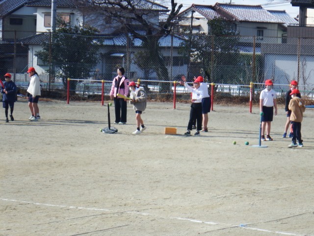 5年生 体育「ティーボール」運動場で活動しました。止まったボールをバットで打つ練習をしました。なかなかボールを打つのは難しいですね!練習して上達していこう!