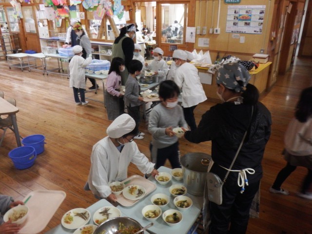給食の準備の様子です!テキパキと準備が進んでいきます。しっかり食べてくださいね!「いただきます♪」