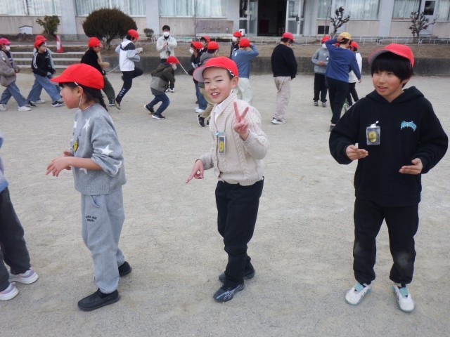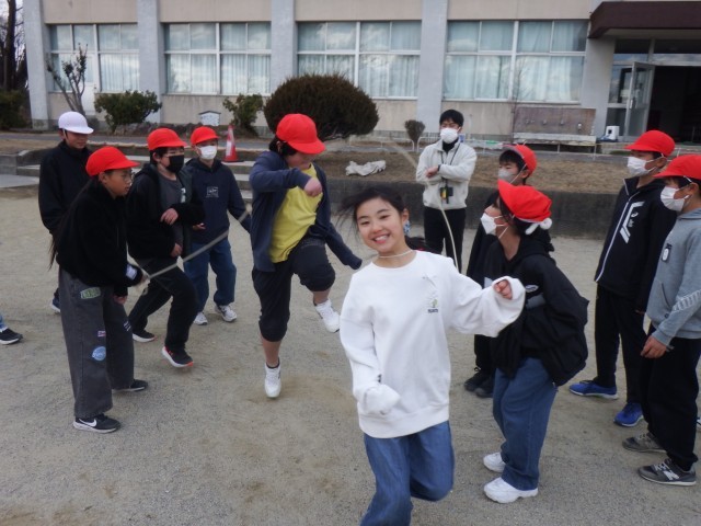 お昼の放課「のびのびタイム」です。水曜日に向けて、3・4・5年生の児童が大縄跳びの練習に取り組みました!