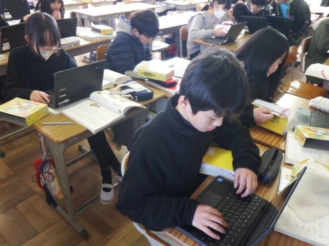 6年生 国語「日本語の特徴」~使えることばにするために~ 数ある熟語が使えるように、その意味を辞書で調べました。調べた意味をタブレットの表に打ち込んでいきました。整理してまとめていきましょう。
