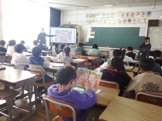 4年生 外国語活動「This is my favorite place.」unit.8 unit7のふりかえり、まとめをした後、新しい単元unit8に入りました。学校の教室を英語で言えるように練習をしていきます。