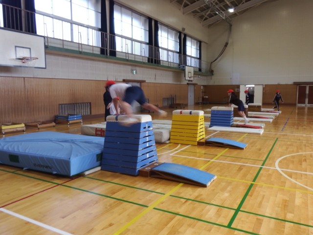 5年生 体育「跳び箱」練習を積み重ね、5段、6段、7段、8段と跳べるようになりました。コツを掴んできましたね!