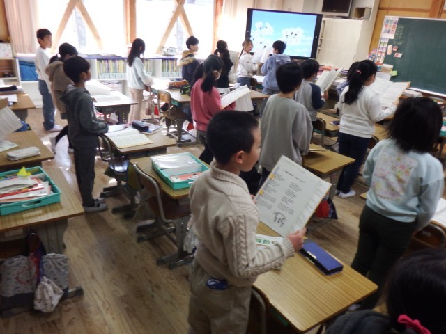 3年生 朝の会の様子です。「Smile Again」の合唱練習に取り組みました♪