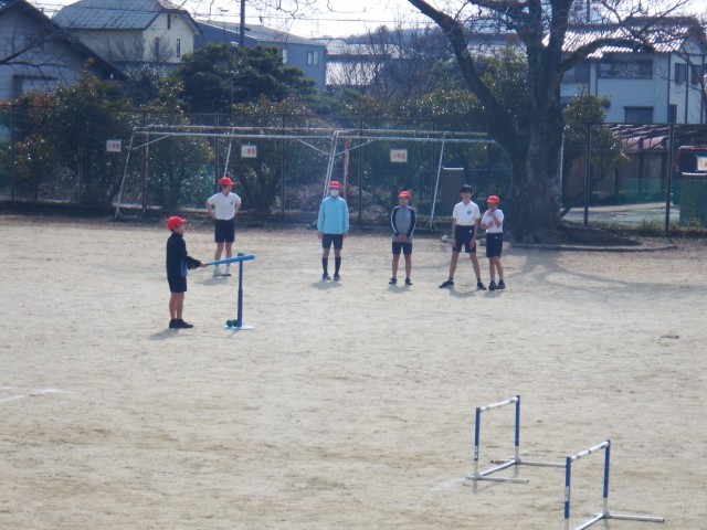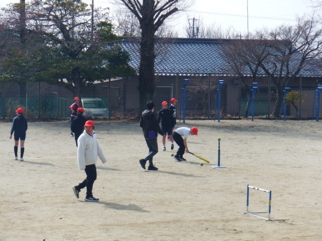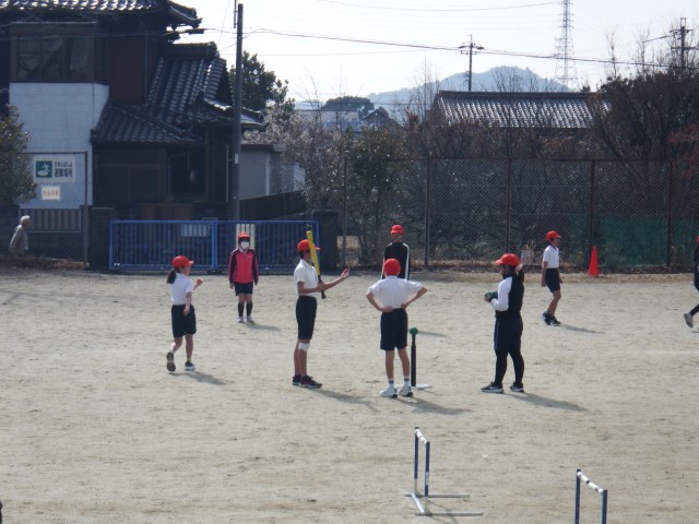 6年生 体育「ティーボール」ティーボールに取り組んでいます。止まっているボールをバットで打つことも難しいですね。。。