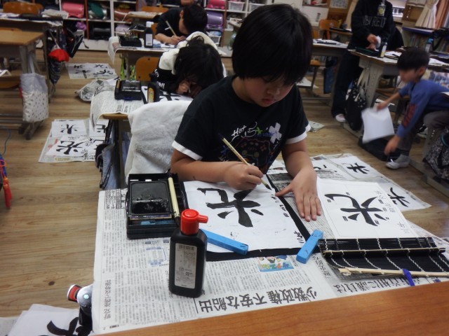 3年生 書写「光」毛筆に取り組みました。筆の使い方、文字のバランスを考えながら練習をしました。