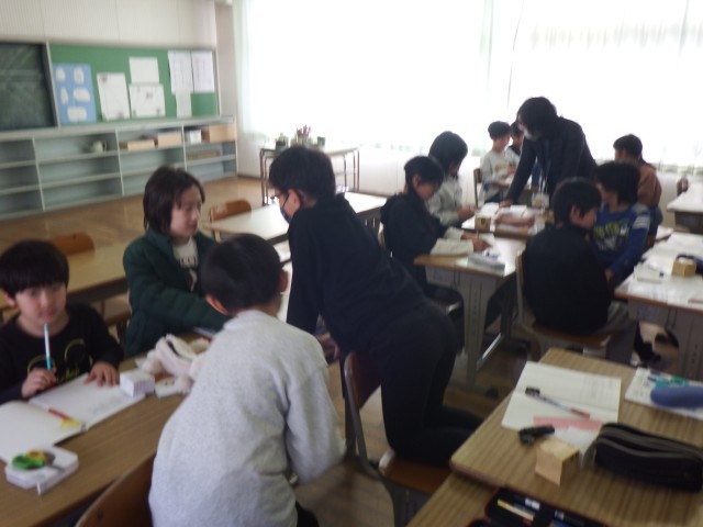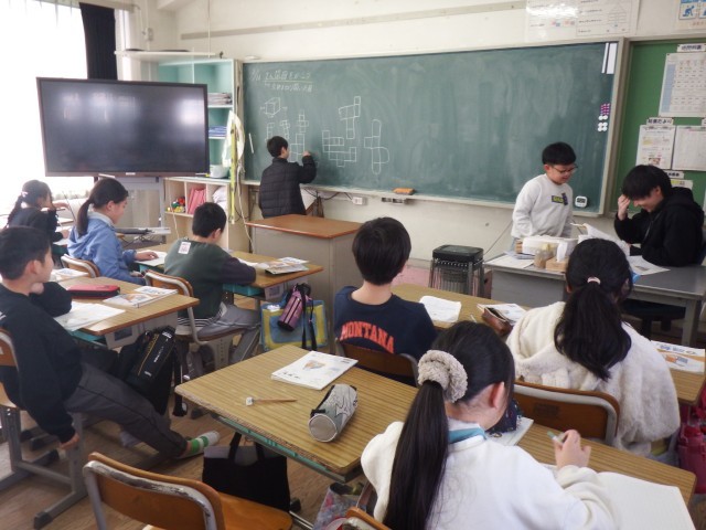 4年生 算数「直方体と立方体」箱の形について学習を進めています。直方体、立方体の辺や面について学びました。