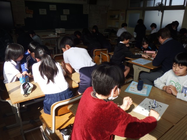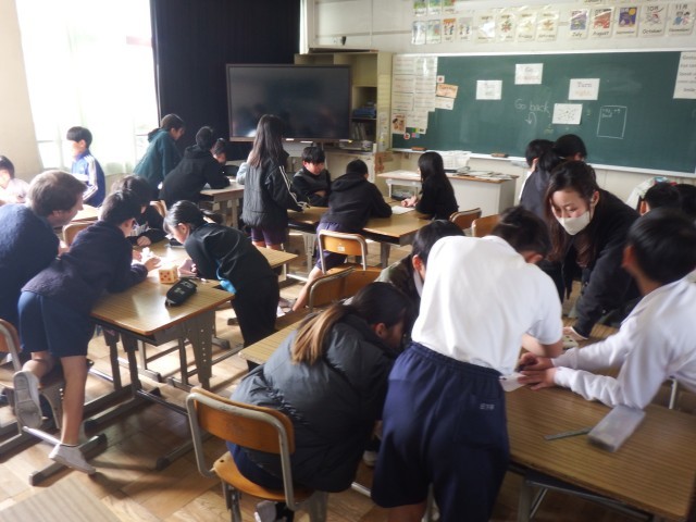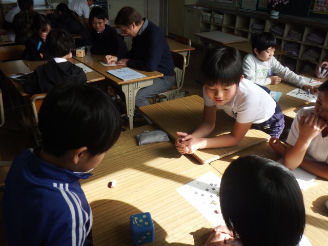 4年生 外国語活動 単元のまとめをしています。スゴロクをしながら楽しく学習をすることができました。