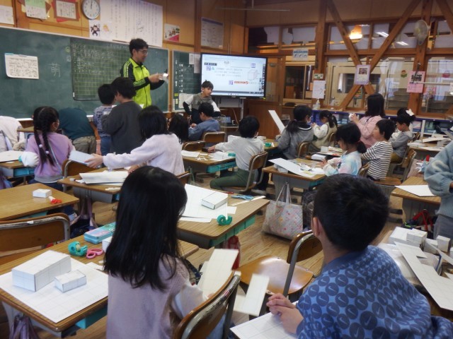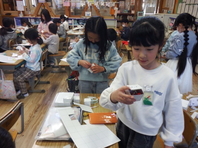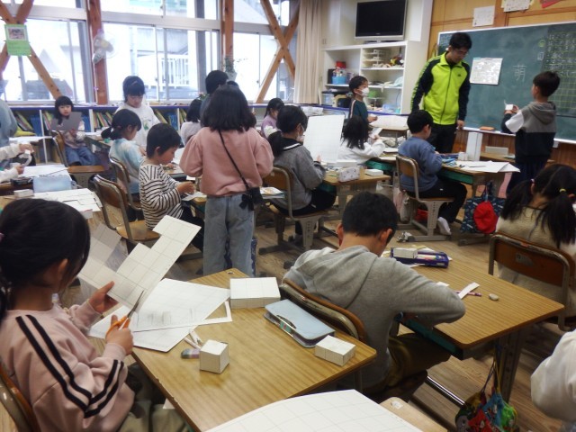2年生 算数「はこの形」今日は方眼紙を使って実際にはこを作ってみました。指示通りのサイズのはこができたかな!?