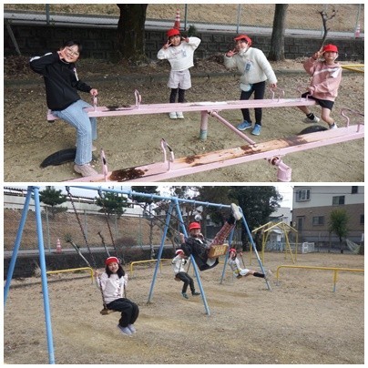 昼放課「のびのびタイム」です。運動場で元気いっぱい遊んでいます♬